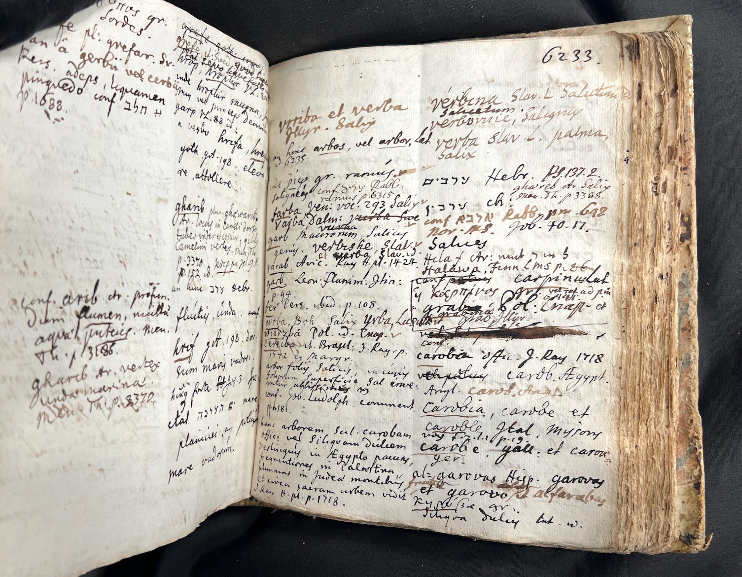 Page by page, I wandered across the etymological field – salix – sälg – selig – heilig – the author extended around this holy tree in his 1695 notes, following references to trees with similar “roots”, such as those mentioned in works on the botany of Brazil and Ethiopia, or in the pilgrims’ journey from the Holy Land; read notes from Rabbinic works on the use of willow twigs in the celebration of Sukkot.