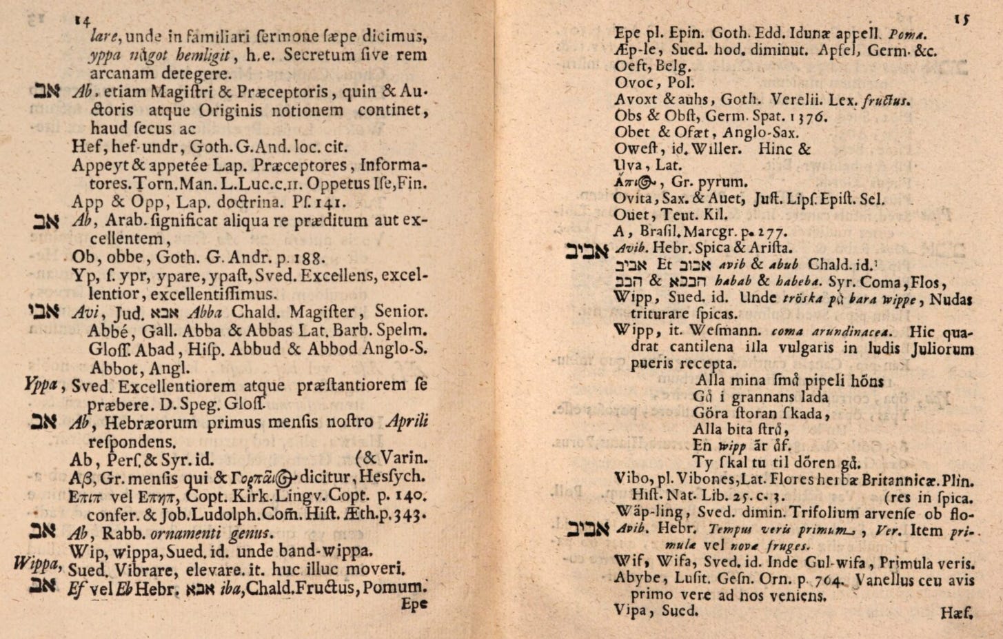 A key idea guiding Rudbeck’s efforts had been that ancient traditions – the Bible and the myths of Elysium alike – pointed to a reality still preserved in the High North of Sweden. After the material basis of his Laponia had collapsed, linguistic reasoning now advanced to the crown witness in the same case.