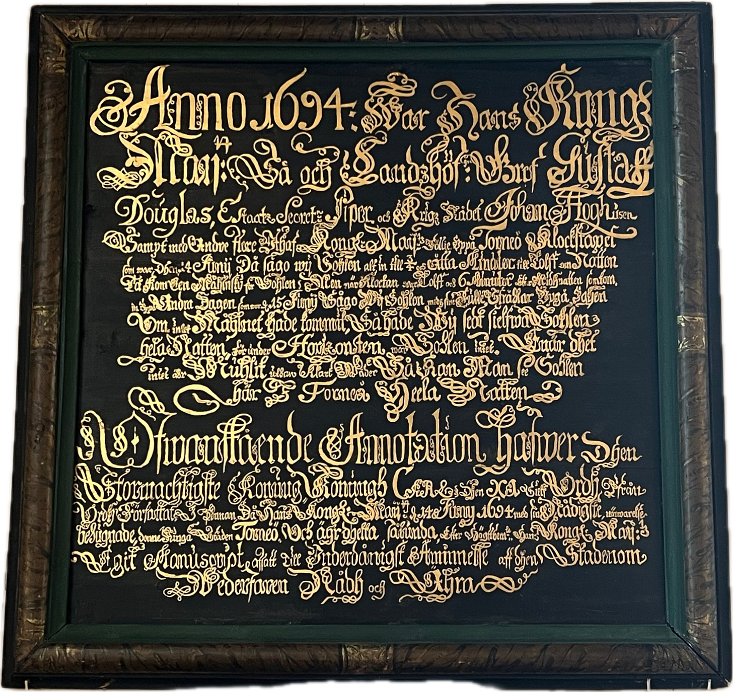 Across Sweden, Charles XI was celebrated as a regent who had taken great hardship on his shoulders to study the wonders his kingdom holds. The governor of Norrland, who had joined the king on the tower at Torneå, later had the observations his king jotted down that night inscribed in golden letters in the church at Torneå.9