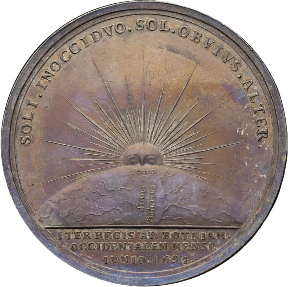 Its reverse shows a sun hovering above the northern tip of the Baltic Sea, commemorating the king’s journey in an imagery and a Latin motto that recalled tropes of absolutist courts: “The sun that doesn’t set is encountered by another sun”.10