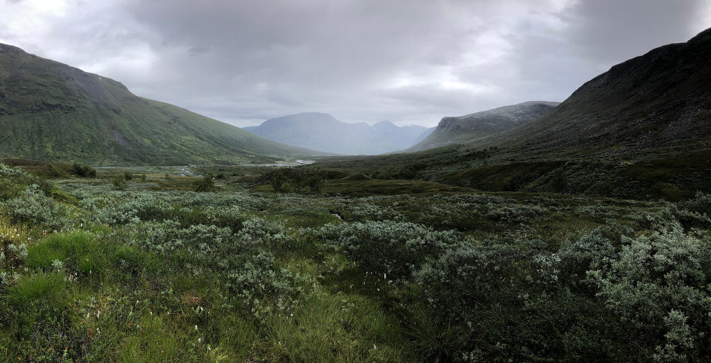 Clouds began to veil the Lulijvágge from where I had made my way down; had seen the first green return after two days of wandering fields of rocks.