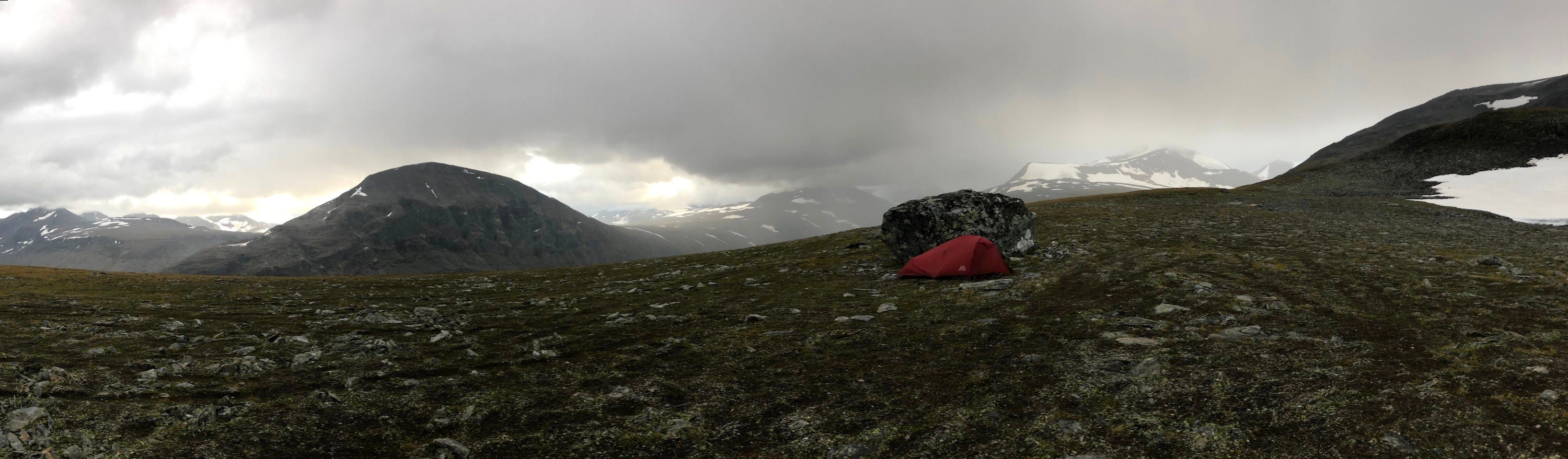 In the light of my headlamp, I had pitched camp near the mountain pass in Lulijvágge, some 1400m high. The next morning, I woke up to cracking sounds.