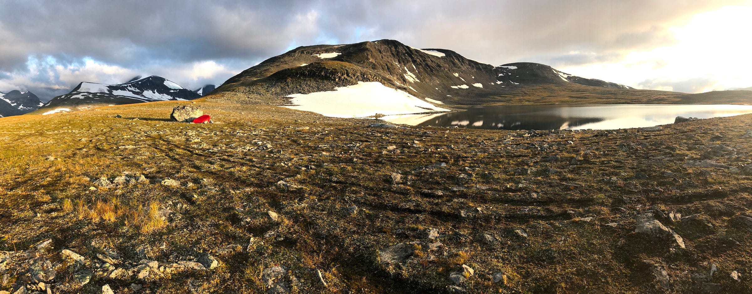 On the opposite shore, I saw the sun rise over Sarek’s main ridge, pouring first light over the last remains of snowfields that hugged the slopes around me. A few weeks from now, the new snow would come in.