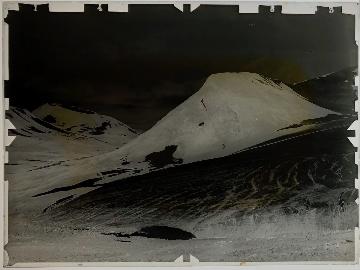 More than a century later, the mountain’s white silhouette appeared again on my light table, flickering like a ghost as the lamp fizzed alive.