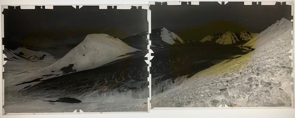 Three glass plates form the panorama Axel Hamberg shot in 1907. Since then, two kilometres of ice have melted away.