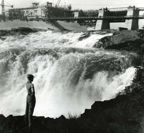A century of log driving ended when the hydropower projects were carried out along Ljusnan. In 1953, the waterfall at Laforsen was sacrificed, once the largest in the southern part of Norrland. A place that had inspired artists and musicians, and where people gathered in early summer to celebrate and dance, yielded to a concrete dam.