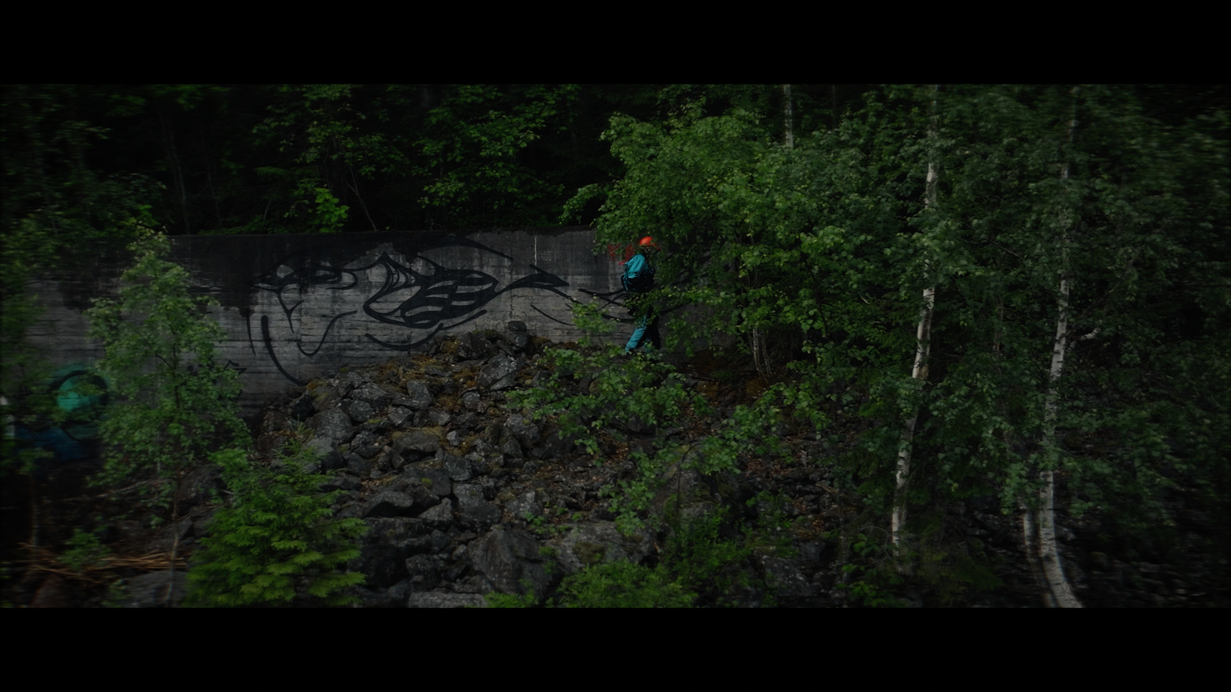 Among the most serendipitous moments was the graffito of a bird, sprayed onto a concrete wall near the outlet of the Laforsen power station.